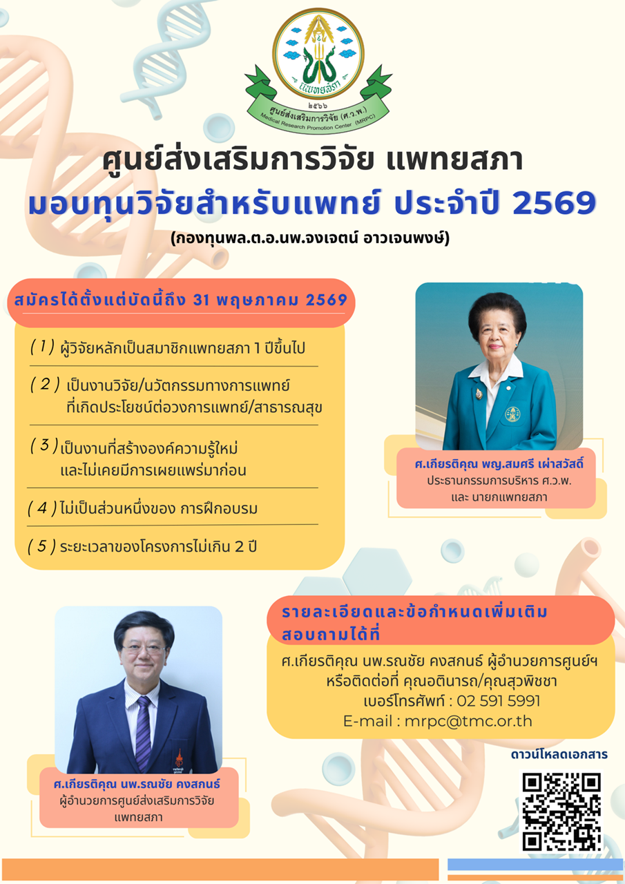 กองทุนพล.ต.อ.นพ.จงเจตน์ อาวเจนพงษ์ สมัครได้ตั้งแต่วันนี้ ถึง 31 พฤษภาคม 2569