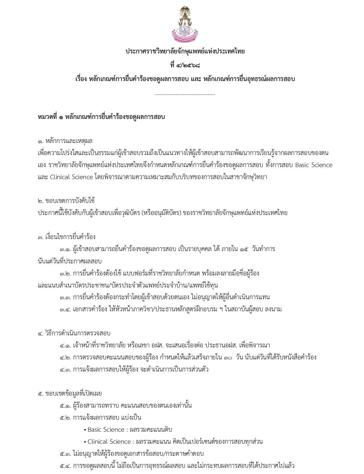 ประกาศ เรื่อง หลักเกณฑ์การยื่นคำร้องขอดูผลการสอบ และ หลักเกณฑ์การยื่นอุทธรณ์ผลการสอบ